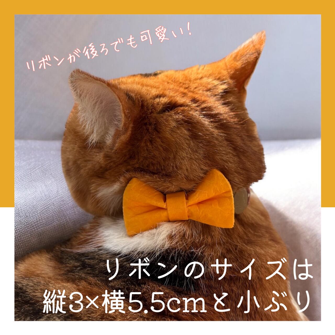 リボン部分は、しっかりと形を形成しているため、猫ちゃんが噛んでも型崩れしにくい設計。さらに濡れても大丈夫な加工を施しているので、日常使いにも安心してお使いいただけます。