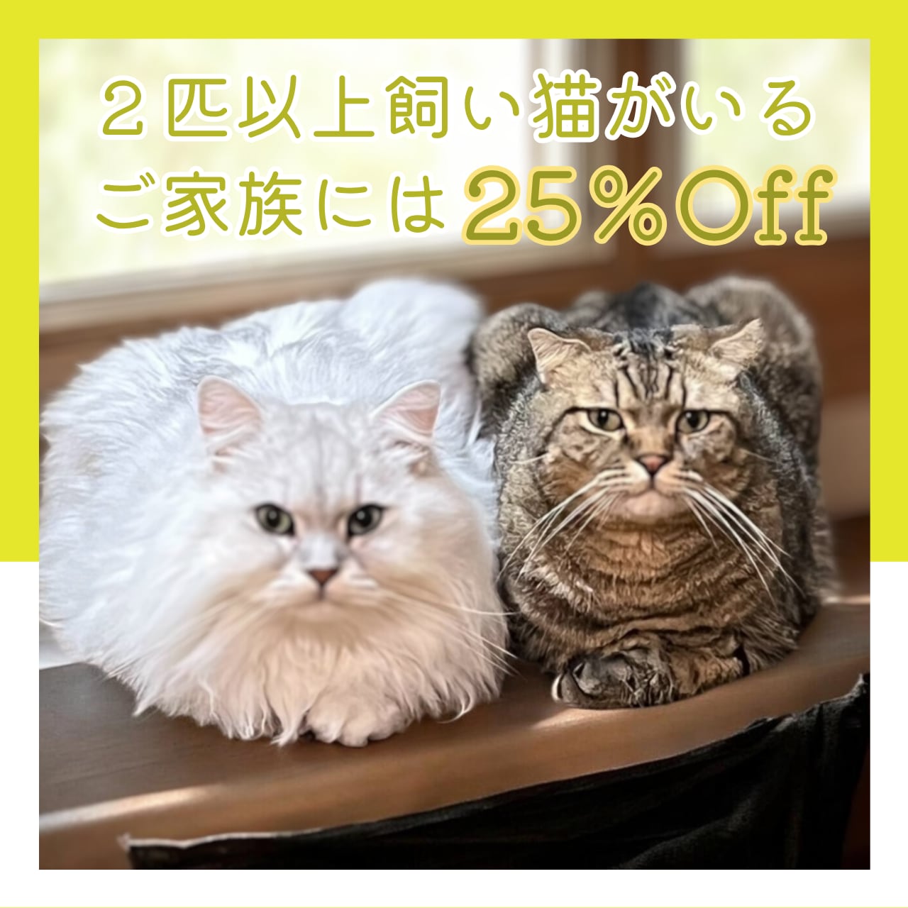 5. 2匹以上飼い猫ちゃんがいらっしゃるご家族には25%Off