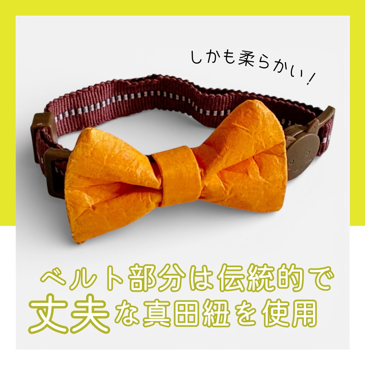 柔らかい質感: 職人が仕上げる和紙は驚くほど軽く、猫ちゃんの首への負担を最小限に抑えます。