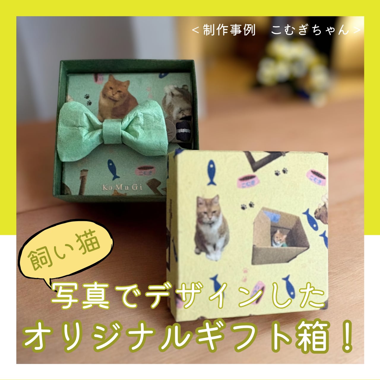 リボンだけでなくギフト箱にも沢山の愛する飼い猫ちゃんがデザインされているのでまさに全てかオンリーワン!